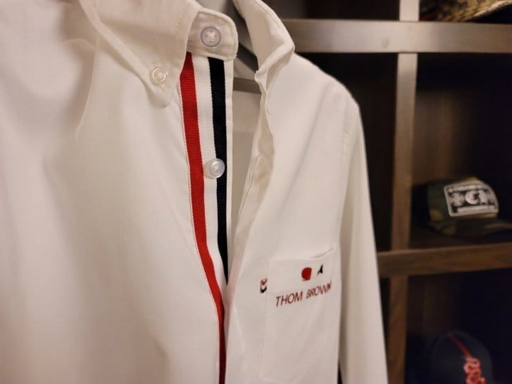 THOM BROWNE 톰브라운 클래식 whale 라인 시그니쳐 포켓 셔츠 2COLOR