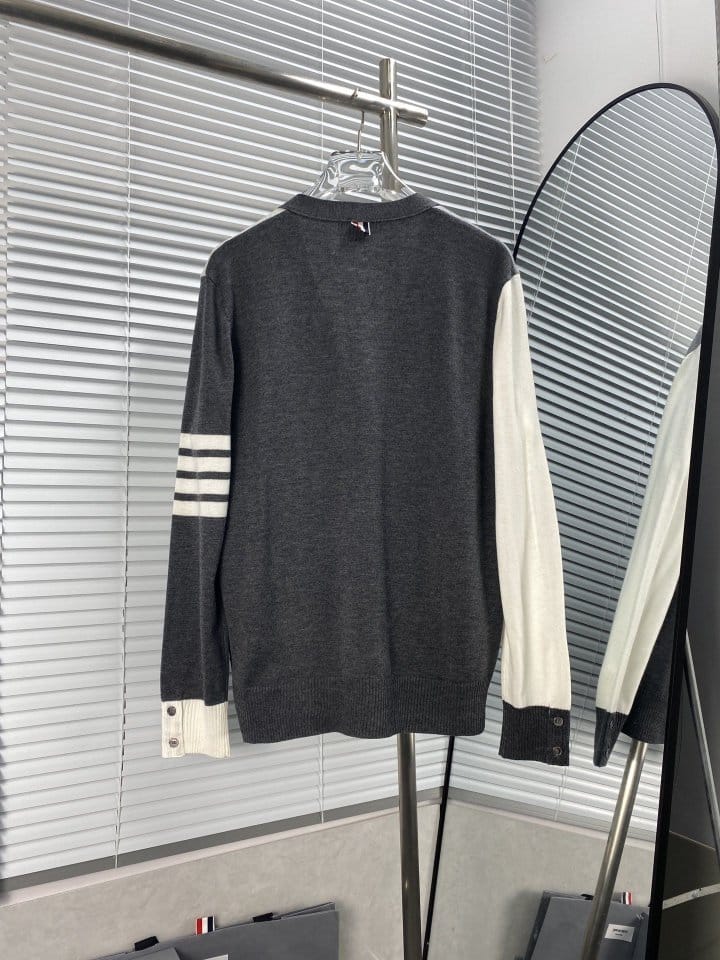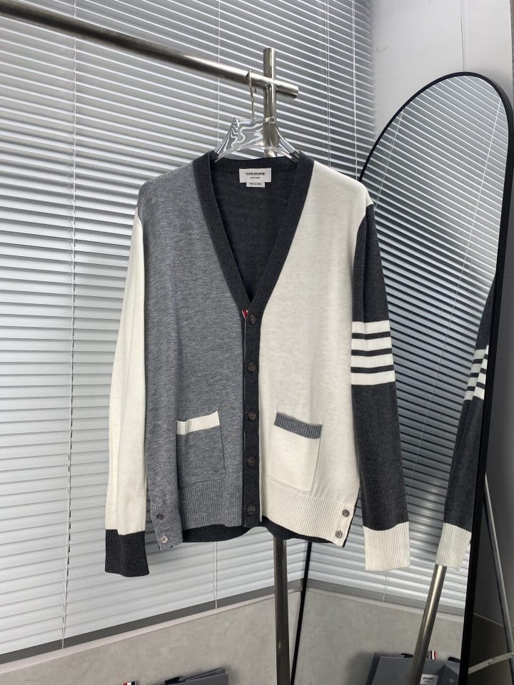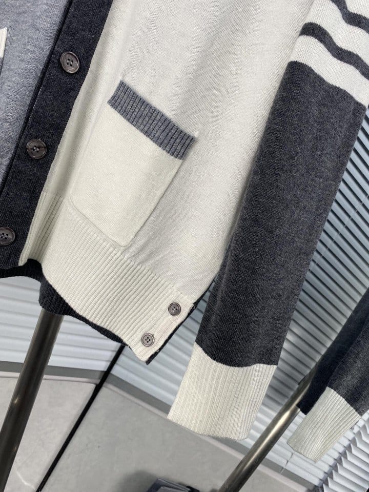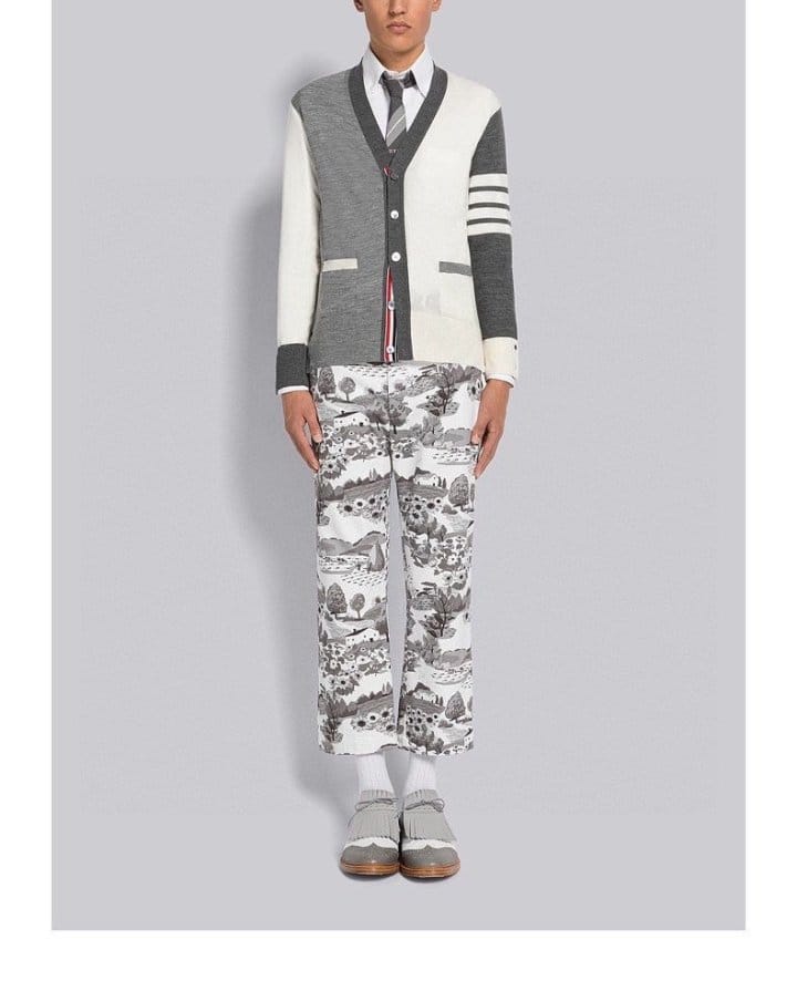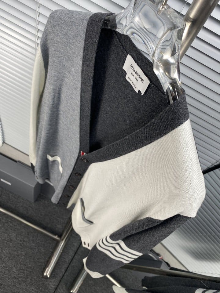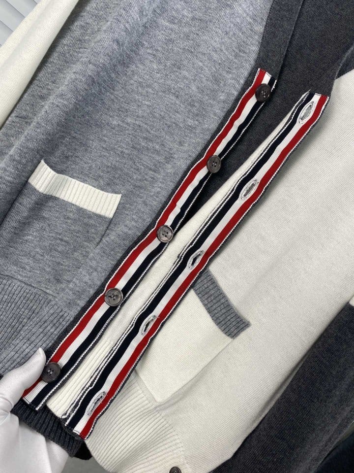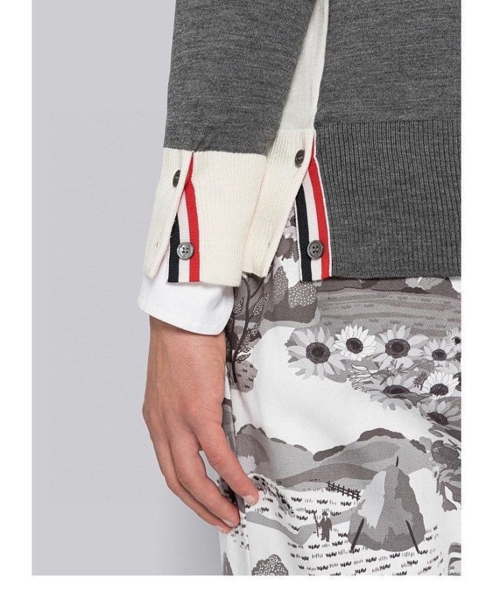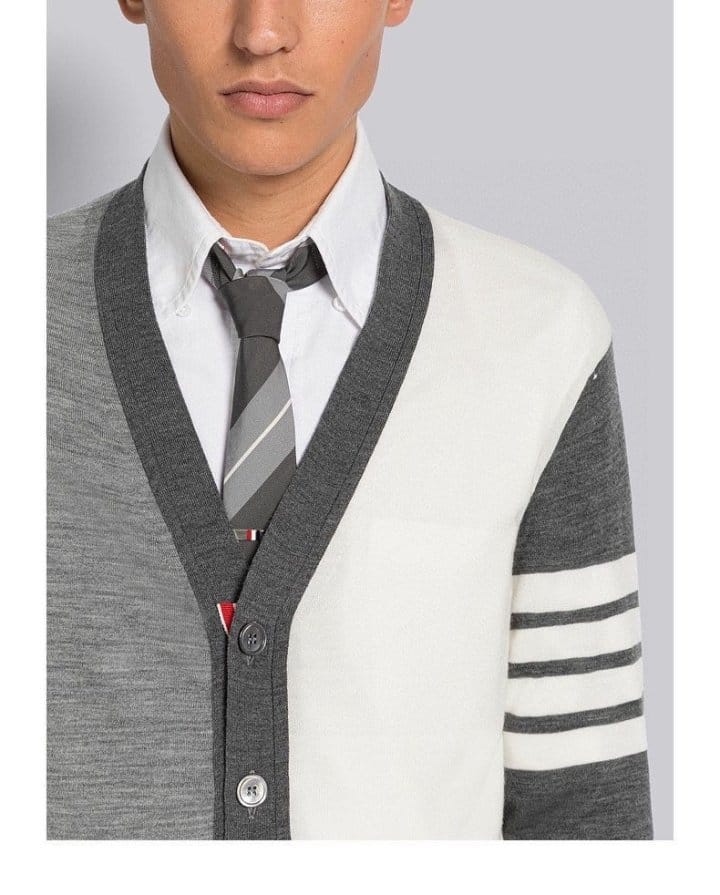 THOM BROWNE 톰브라운 펀 믹스 파인 멜리노 사선완장 클래식 V넥 가디건