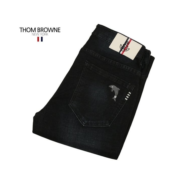 THOM BROWNE 톰브라운 4바 돌고래자수 블랙워싱 슬림진