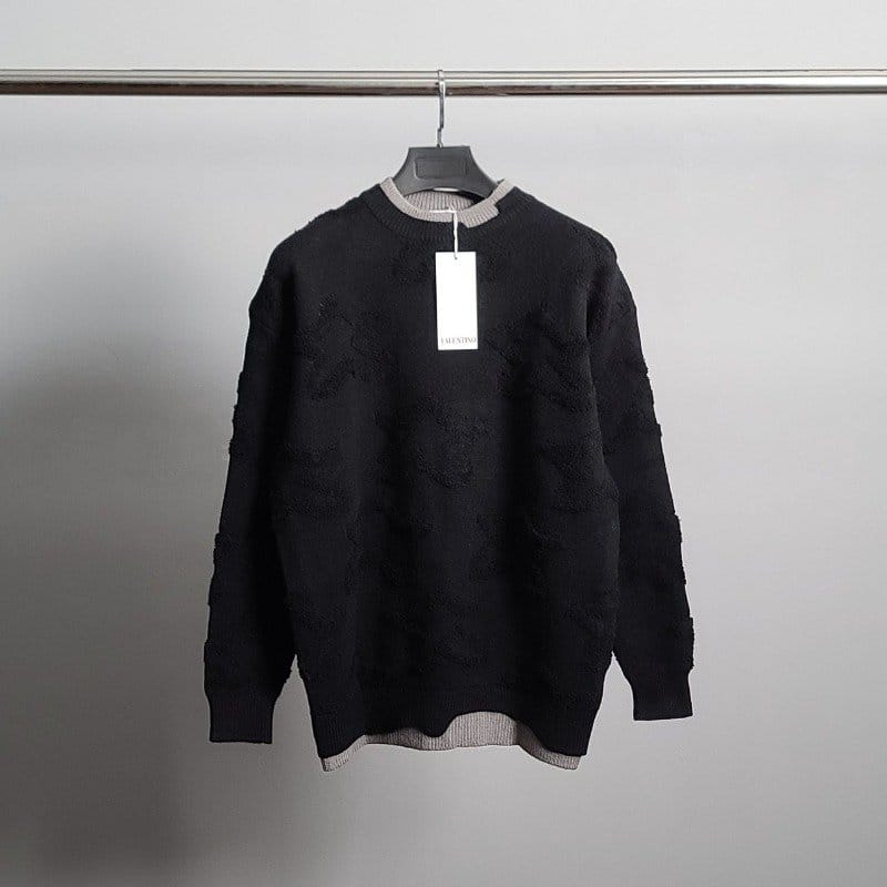 VALENTINO 발렌티노 엠보스타 레이어드 울 니트